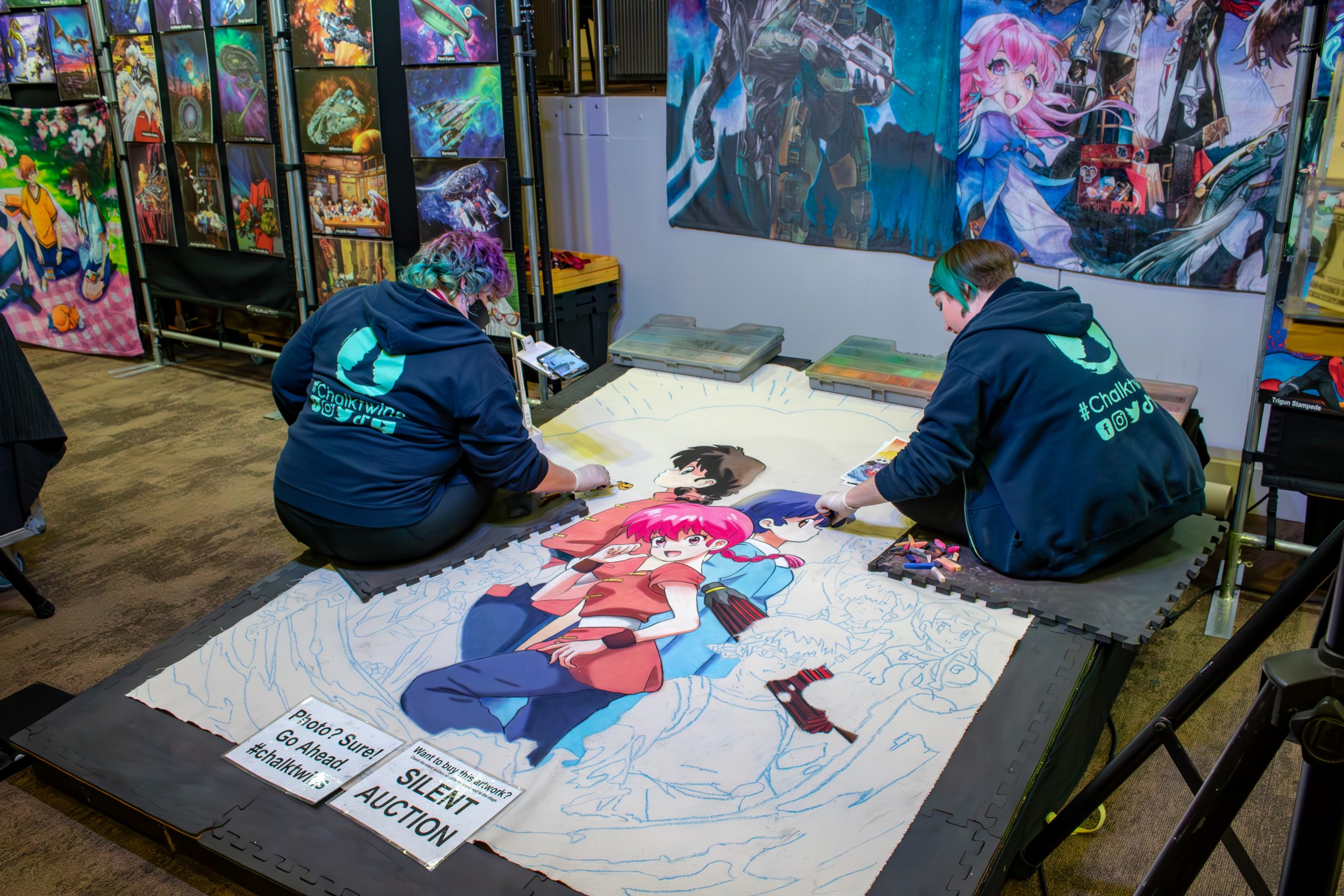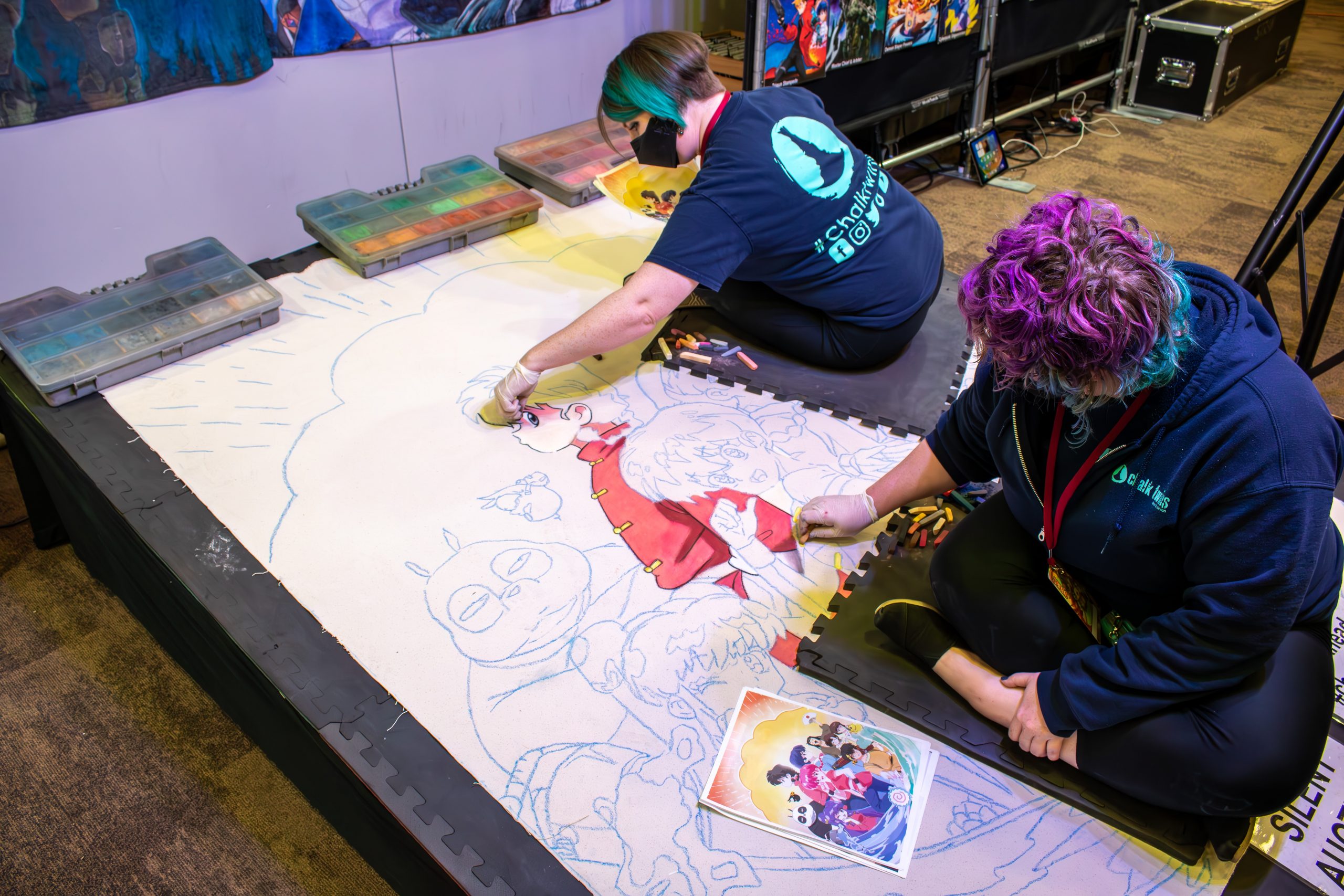 An extraordinary pair of artists, the Chalk Twins are renowned for their chalk murals of epic proportions. Traveling the world in pursuit of artistic mastery, they are a regular installment at conventions and events across the country, where they produce massive chalk masterpieces live. The Chalk Twins are true in advertising – they are twins, and they work together with soft pastel chalk. When you see them, we encourage you to get down low and talk to them. They would be glad to answer questions and talk about art, geeky stuff, twin stuff – whatever you like. They don’t bite. We promise.