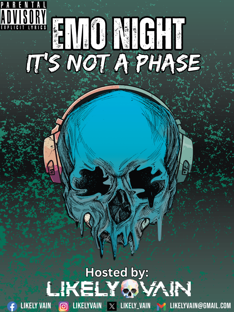 Dust off your rubber bracelets, your vans, and that one band tee you’d always wear. We’ll be blasting all your favorite emo, pop punk, and metalcore songs all night. It will feel like Warped Tour again, without having to stand outside in the heat waiting for your favorite band to play. Get ready to join Likely Vain for a trip back to the good ol’ days.