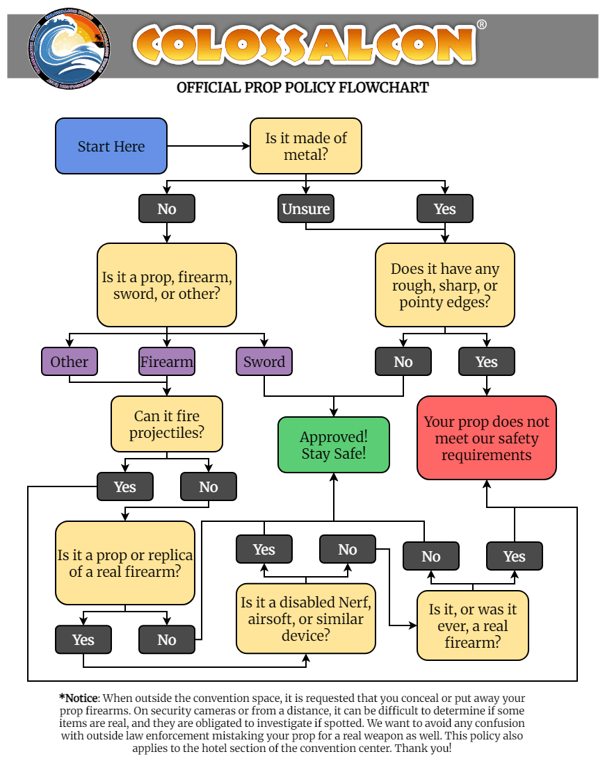 - We want all our attendees to have an amazing time in an open-minded and welcoming environment where everyone can enjoy everything our event has to offer. However, to ensure a safe and enjoyable experience for all, we have to put some restrictions on props and other items.