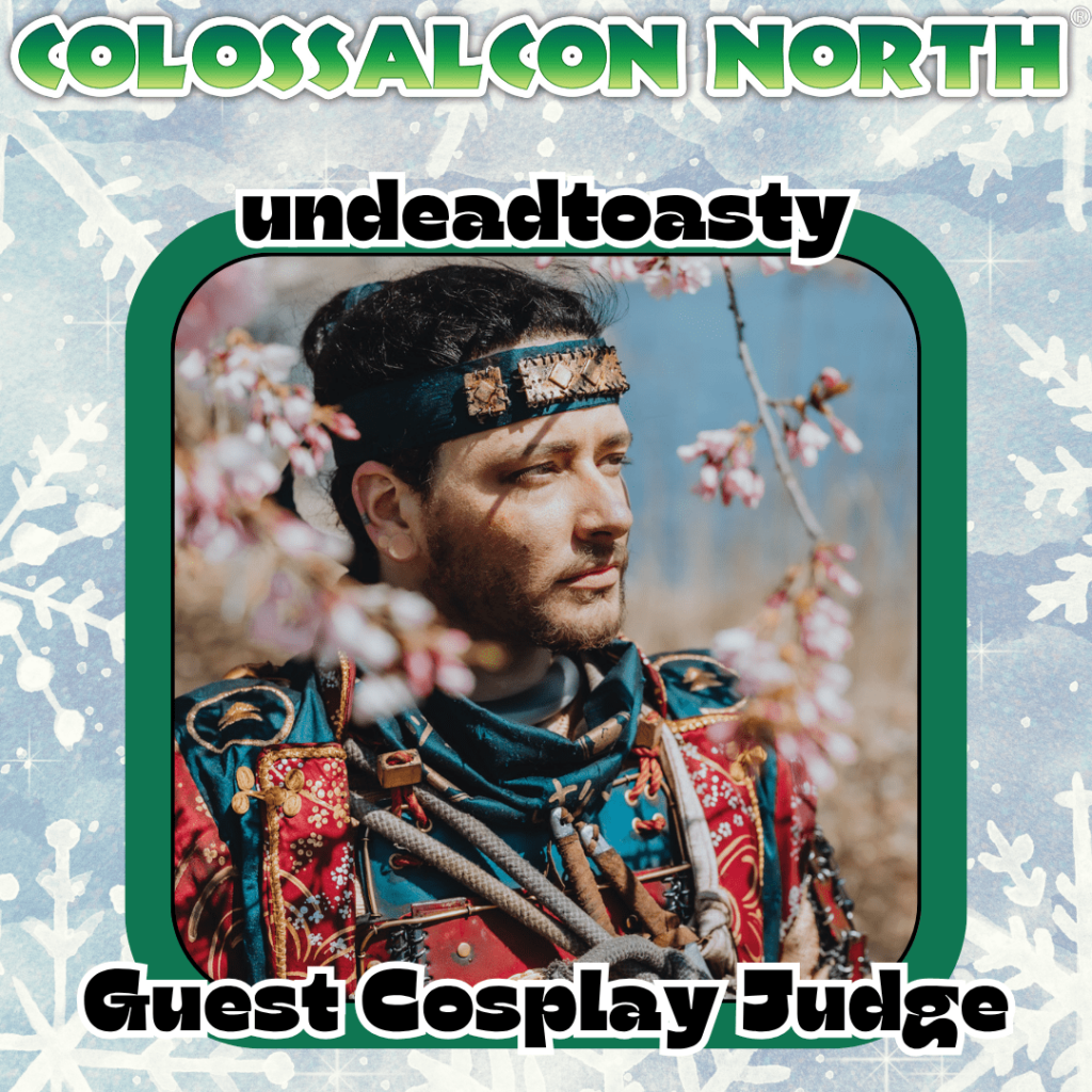 undeadtoasty (they/he) is a masters level Colorado-based cosplayer with a wide variety of crafting and judging experiences. He holds a degree in costume construction for theatre and has been cosplaying since 2013 and judging craftsmanship since 2017. He is greatly skilled in needlework, historical Japanese-inspired garments and armor, prop-making, and custom wig creation, but is most well-known for his weathering and ability to bring realism into cosplay. He is incredibly excited to be a part of Colossalcon Cup Cosplay Circuit and is looking forward to seeing all of the incredible work our cosplayers have put forth!
